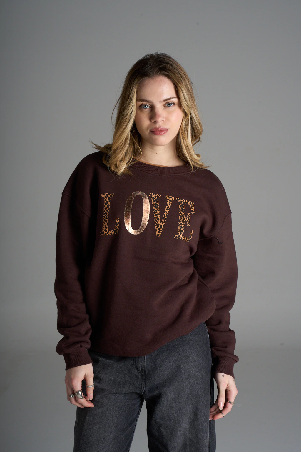 El Buzo Love Foil Print está confeccionado en suave friza, garantizando comodidad y calidez. Su diseño de hombro caído y recorte en las mangas añade un toque único y contemporáneo.