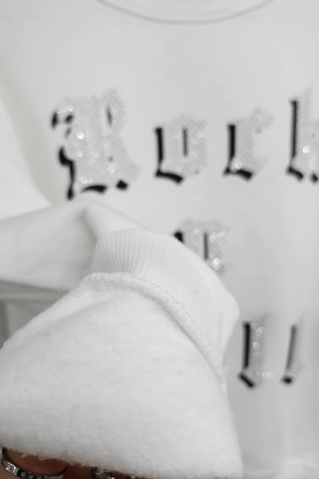 La exclusiva estampa inspirada en el espíritu del rock n roll se complementa con un delicado aplique de strass, sumando un toque de brillo y personalidad única a tu look.
