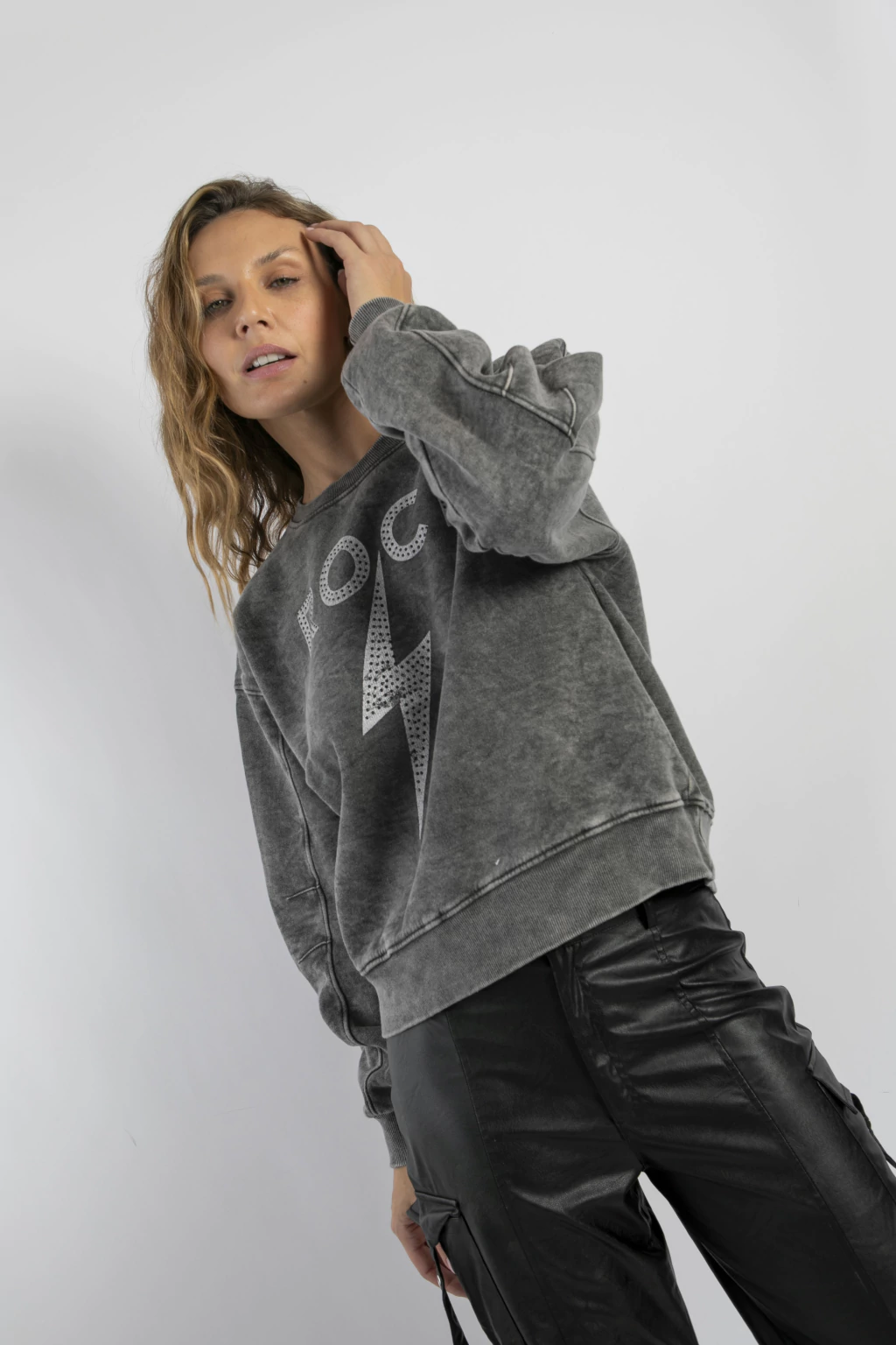El diseño incorpora recortes en las mangas que aportan un look moderno y dinámico, mientras que su estampa única y aplique de strass añaden un toque de brillo y originalidad.