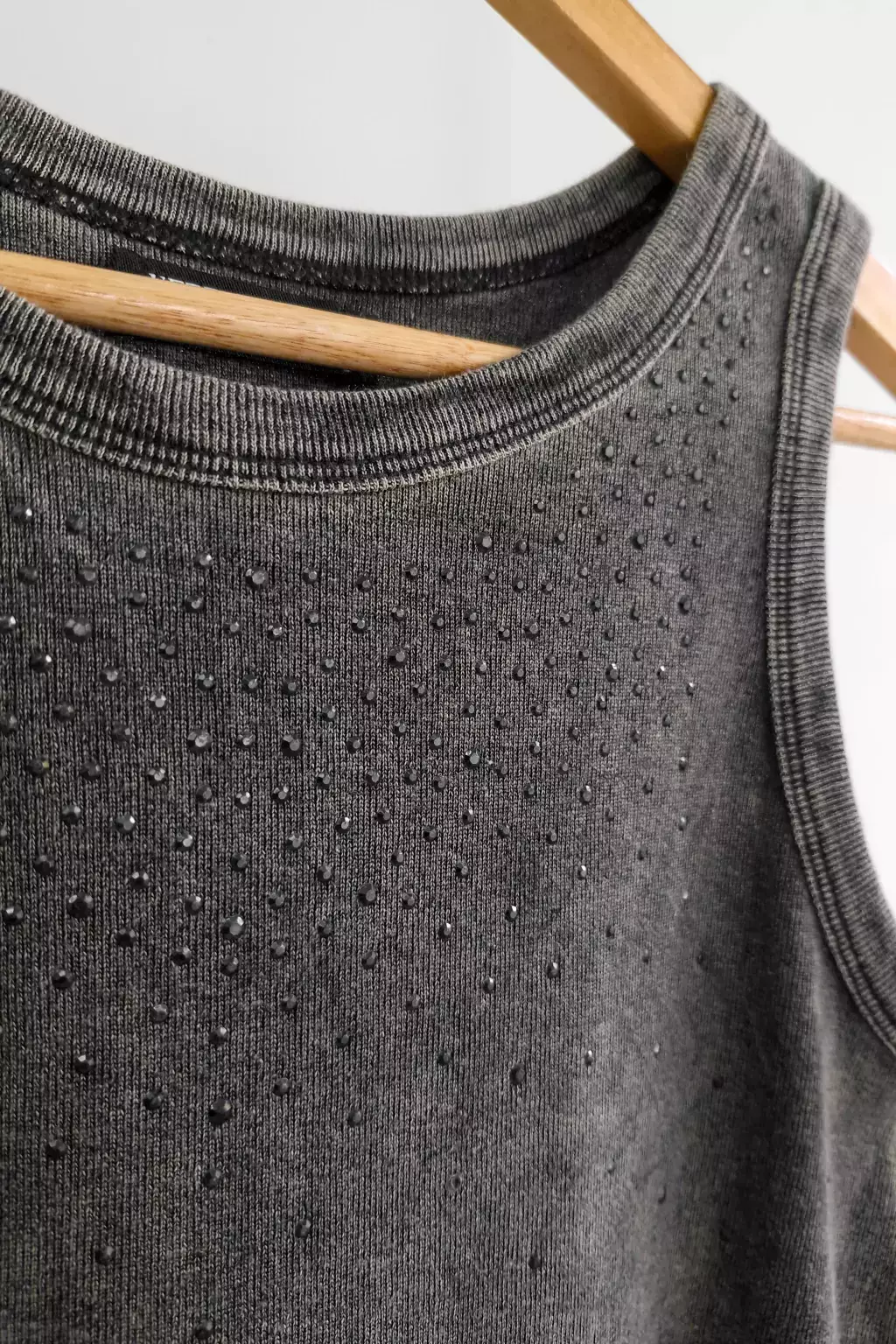 Renová tu estilo con esta musculosa básica confeccionada en morley algodón pre lavada, garantizando suavidad y confort. Su diseño clásico se realza con un delicado aplique de strass, aportando un sutil toque de brillo. Ideal para combinar tanto looks casuales como más sofisticados, es una prenda esencial en tu guardarropa para lucir fresca y a la moda en cualquier ocasión.