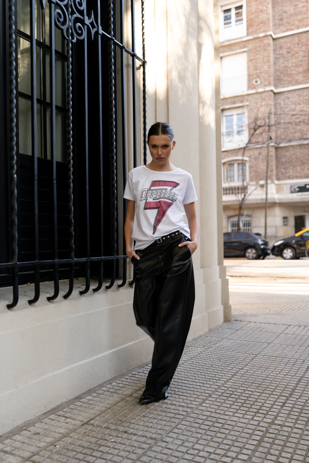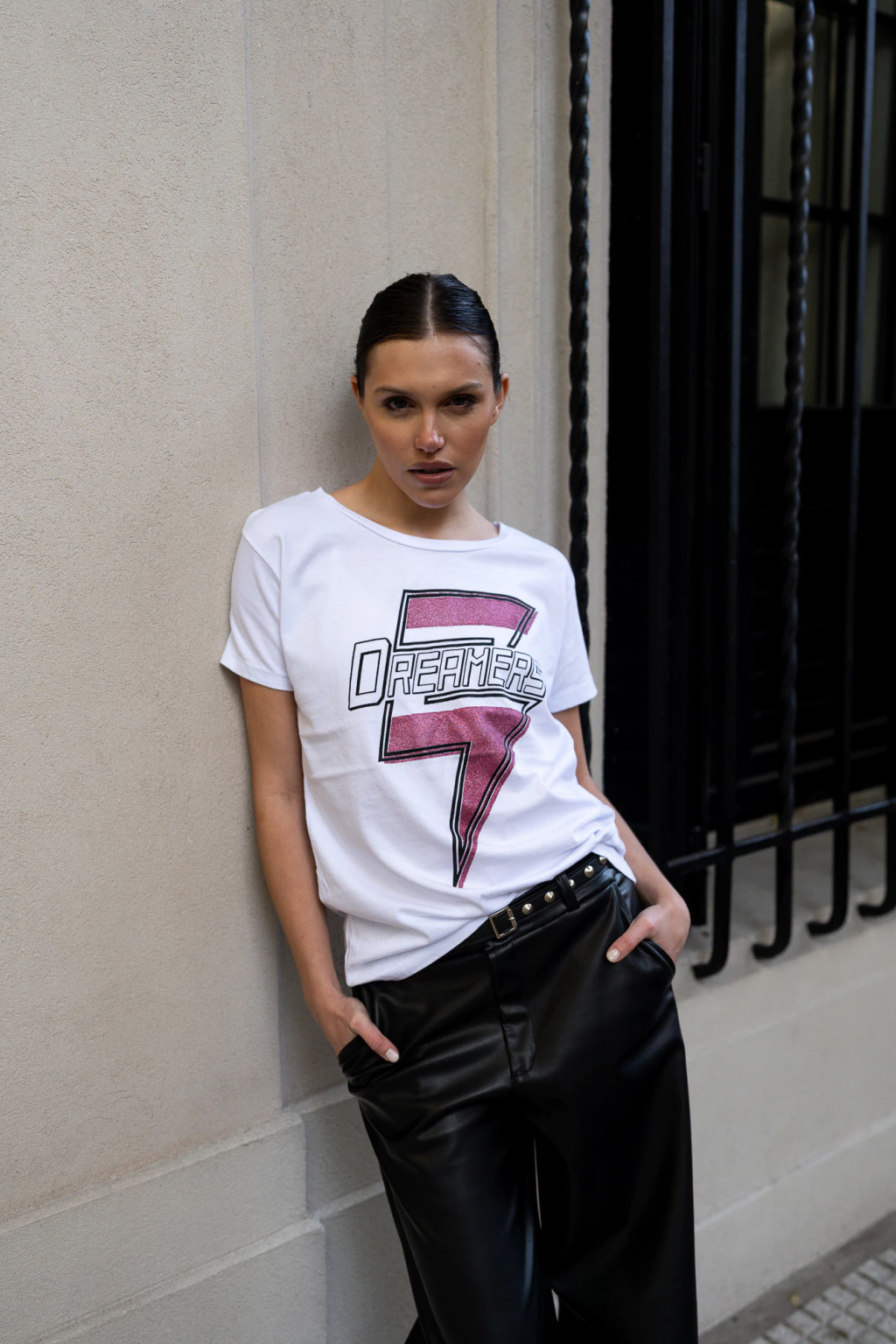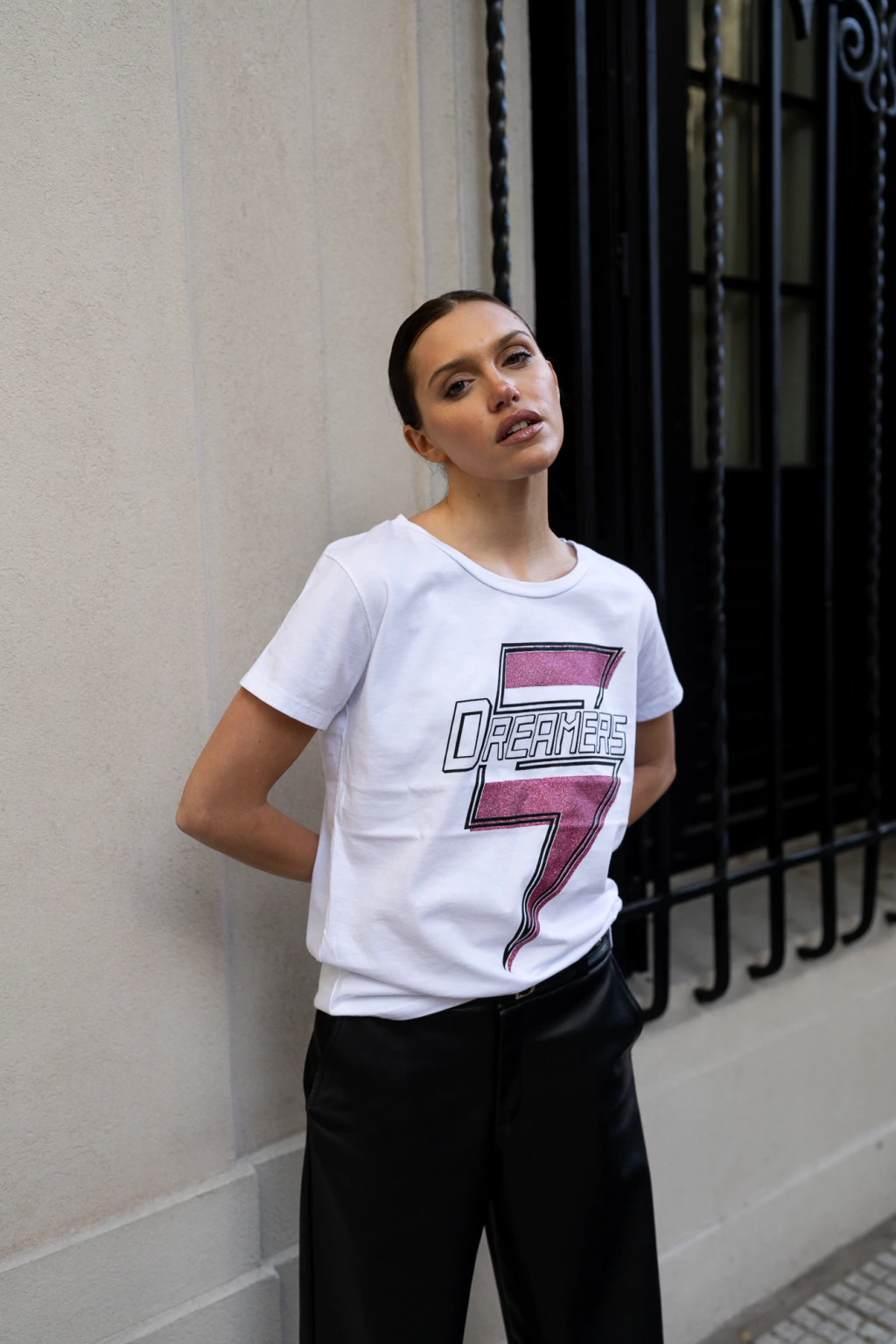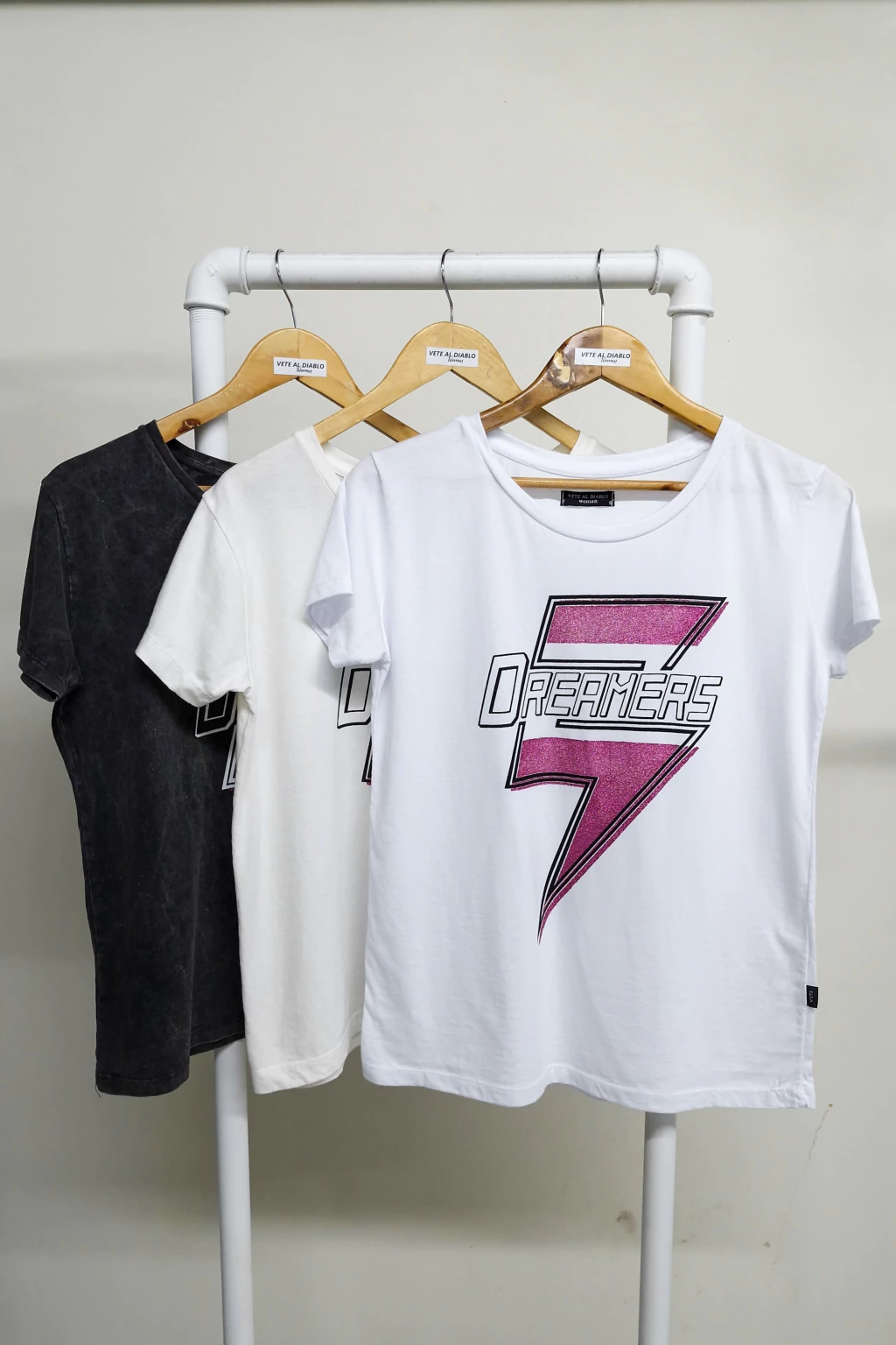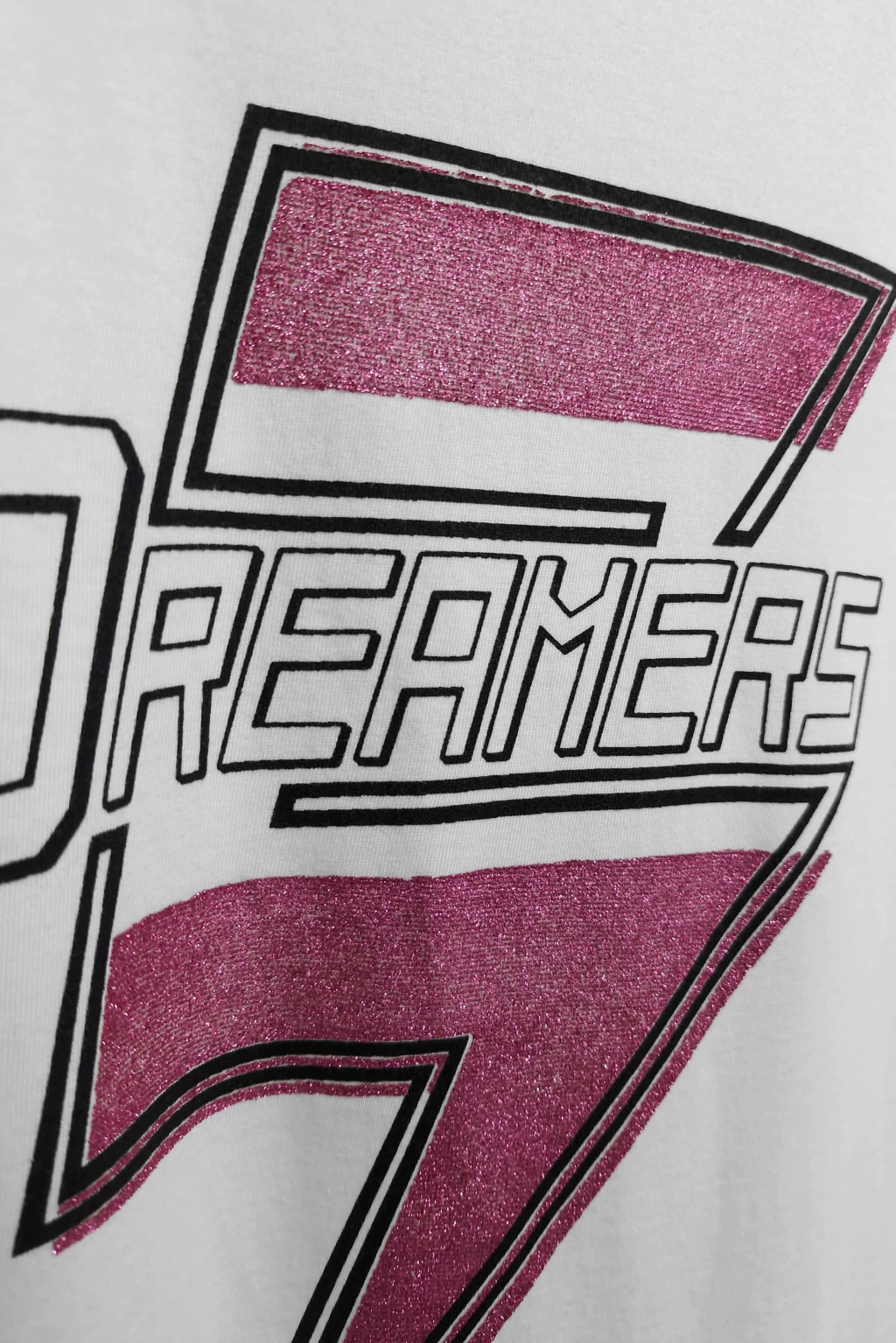 Descubrí la remera manga corta con escote redondo pre lavada, para que dure en el tiempo lavado tras lavado. Confeccionada en materiales de alta calidad, esta prenda se realza con una estampa exclusiva y detalles de glitter que aportan un brillo sutil.